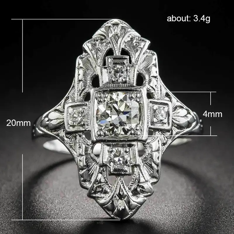 خاتم مجوف جديد من الفضة المطلية بالنحاس الأوروبي والأمريكي مرصع بالألماس