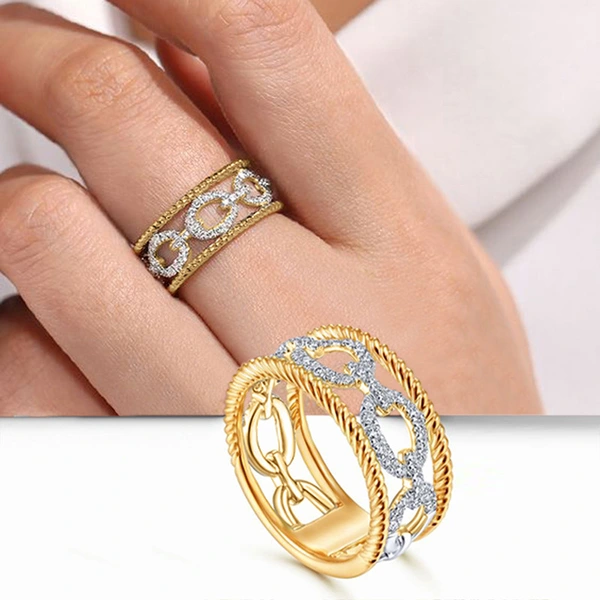 خاتم مجوف رائع بلونين للنساء، مجوهرات بتصميم هندسي، فاخر خفيف، سيدات أنيقات، نمط شعبي