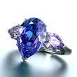 خاتم مجوهرات جديد على شكل دمعة كمثرى مرصع بالزركون الأزرق والأرجواني خاتم عصري ومبتكر