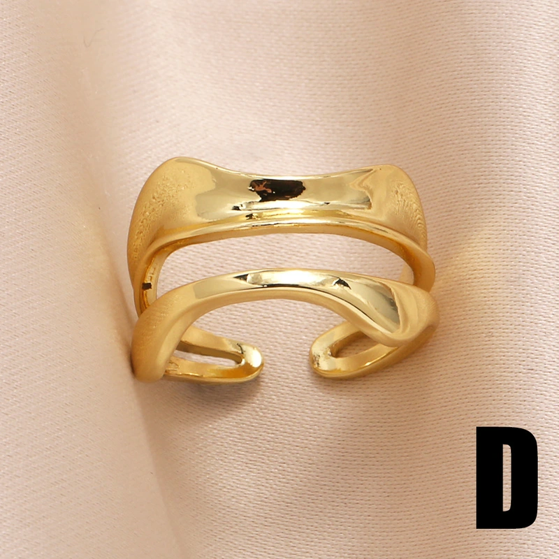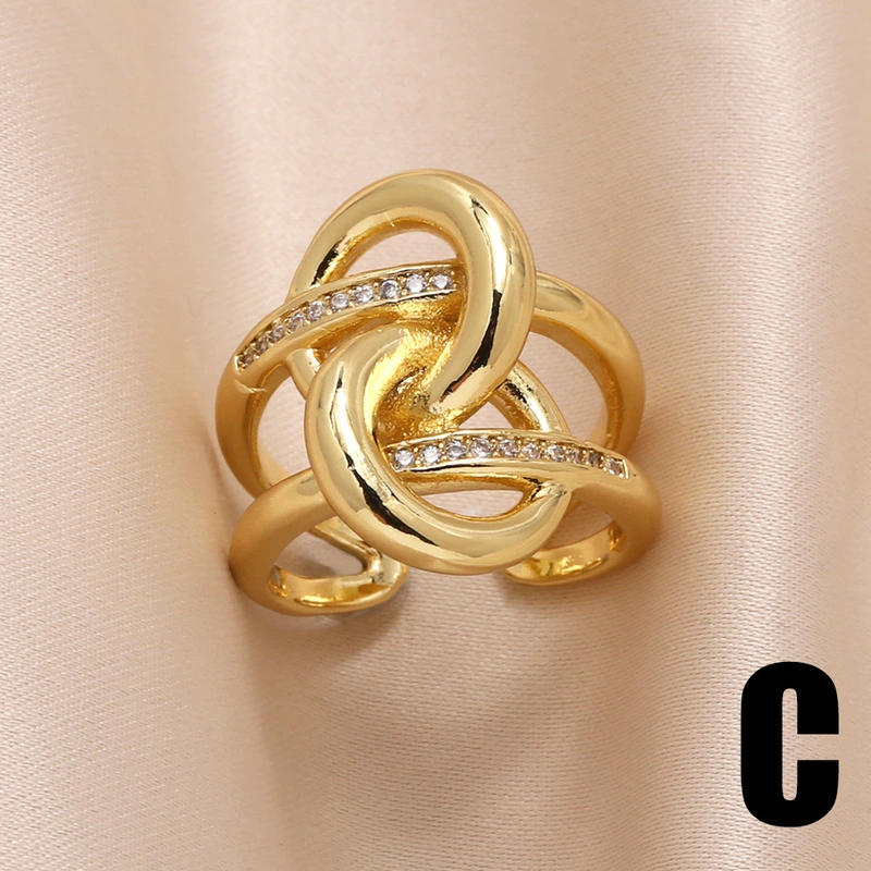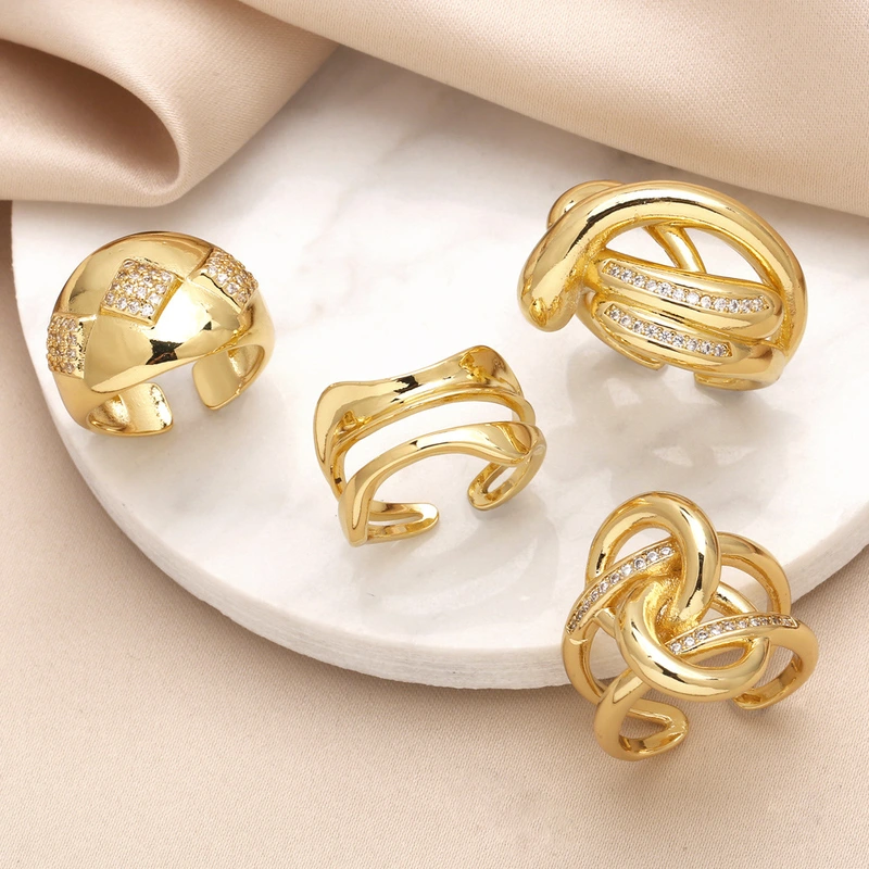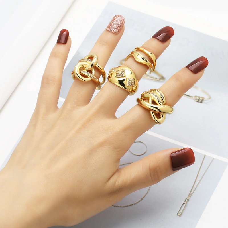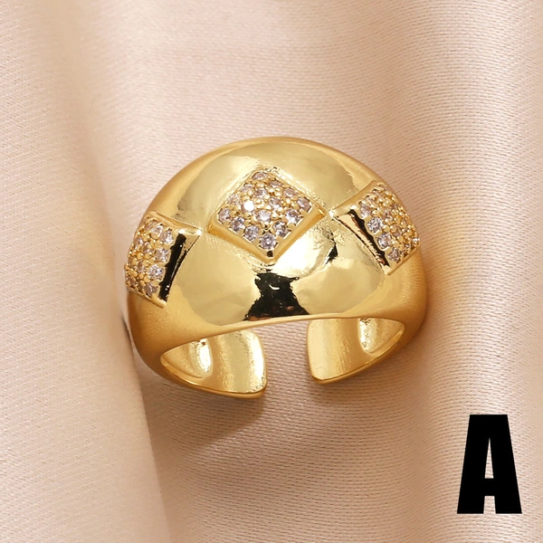خاتم مجوهرات هندسي ناعم للنساء مطلي بالنحاس من الذهب عيار 18 قيراطًا مرصع بالزركون rin91