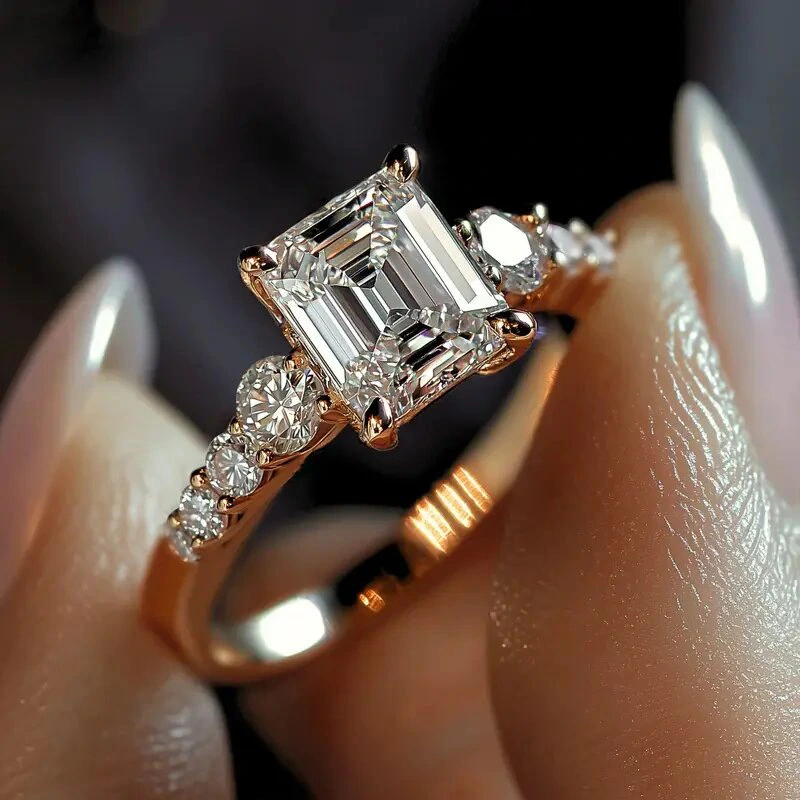 خاتم مربع رائج البيع للنساء العروس خفيف الوزن على الطراز الفاخر والمجوهرات الراقية على طراز خاتم كلاسيكي من الذهب المقلد