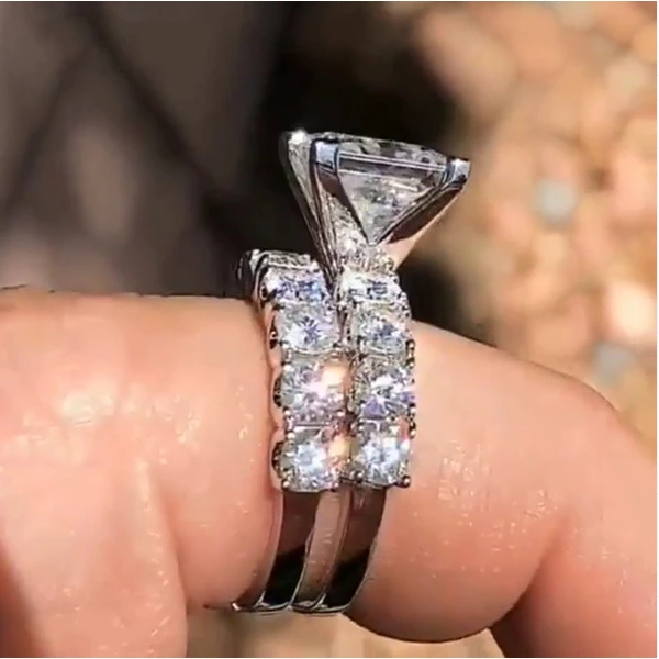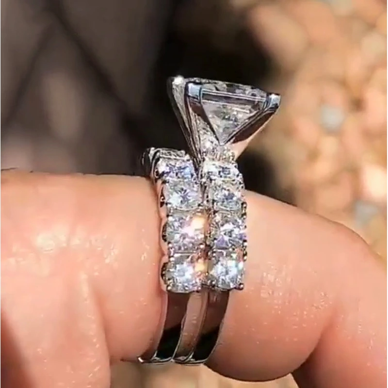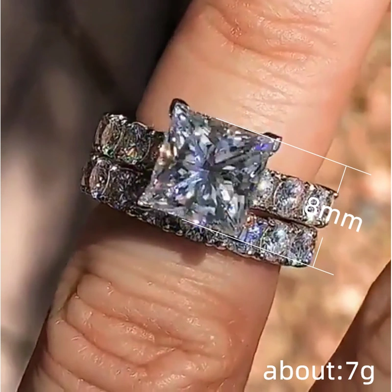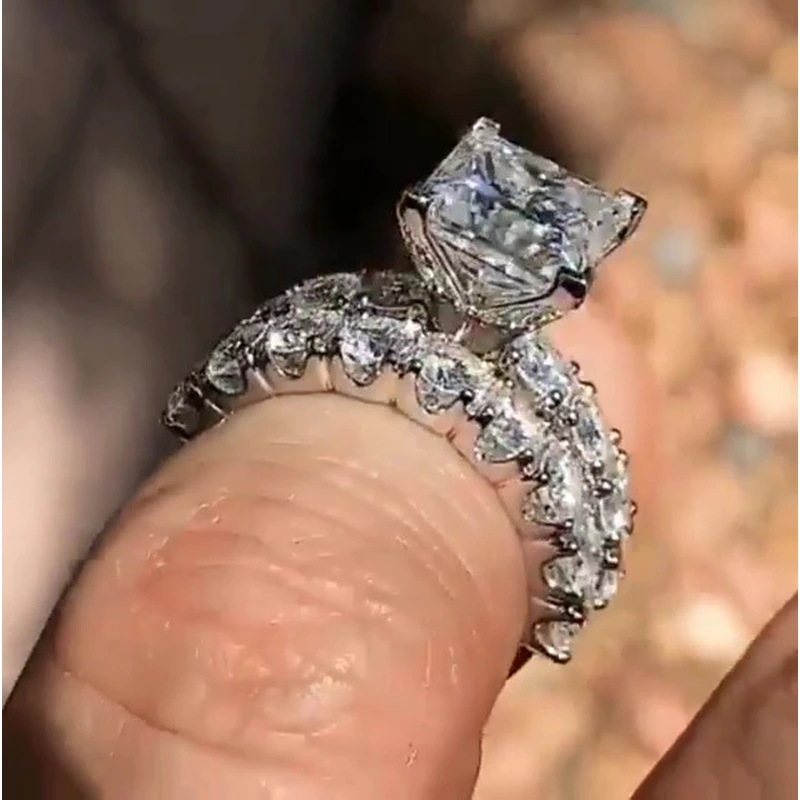 خاتم الأميرة المربع الجديد الأكثر مبيعًا على الطراز الأوروبي والأمريكي المرصع بالزركون مجوهرات نسائية خاتم خطوبة وزواج