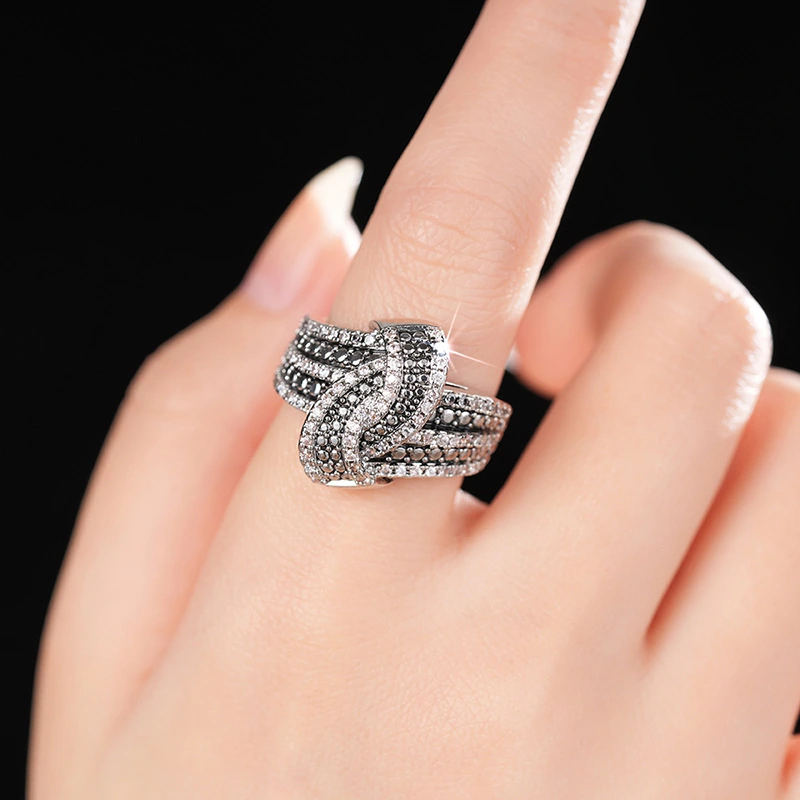 خاتم مرصع بالزركون فائق اللمعان، ثنائي اللون، خاتم أنيق للغاية، تصميم ذراع متأرجح