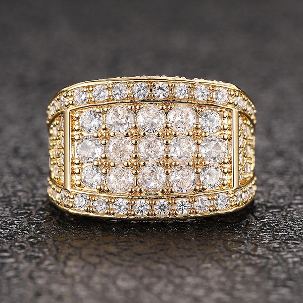 خاتم مرصع بالكامل بمزاج ثقيل عالي الجودة مجوهرات هندسية مربعة لامعة ومميزة