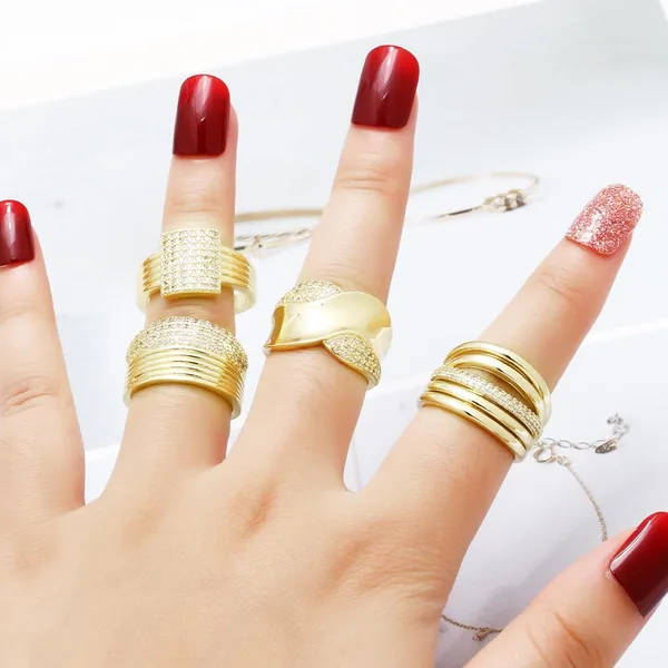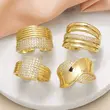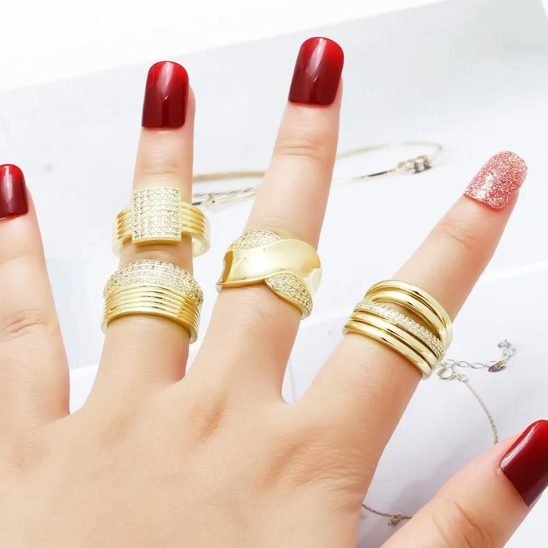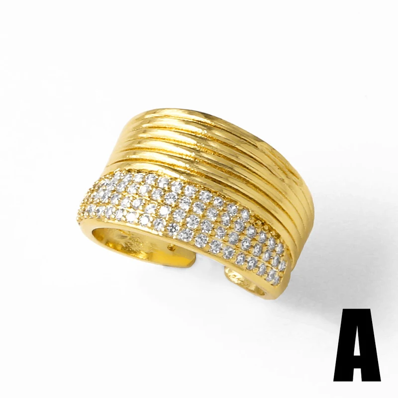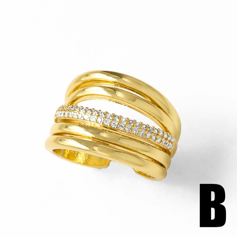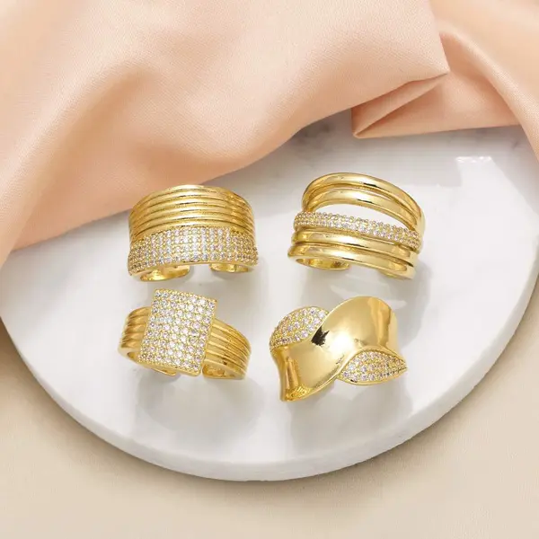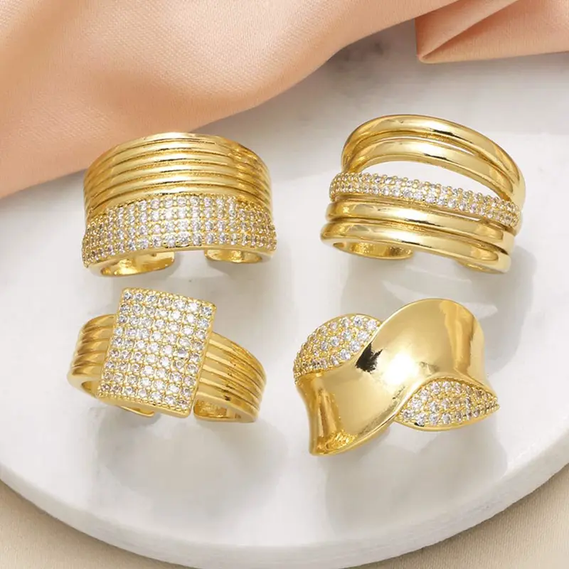 خاتم مزدوج غير منتظم للبيع بالجملة من المجوهرات للنساء مطلي بالذهب خاتم مفتوح من الزركون rih66