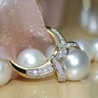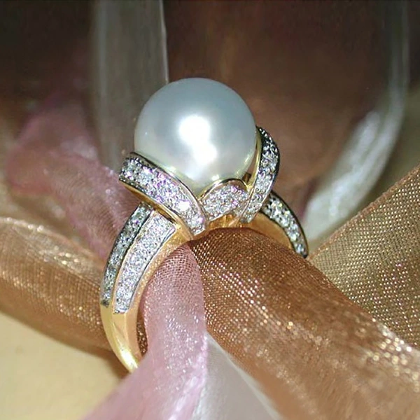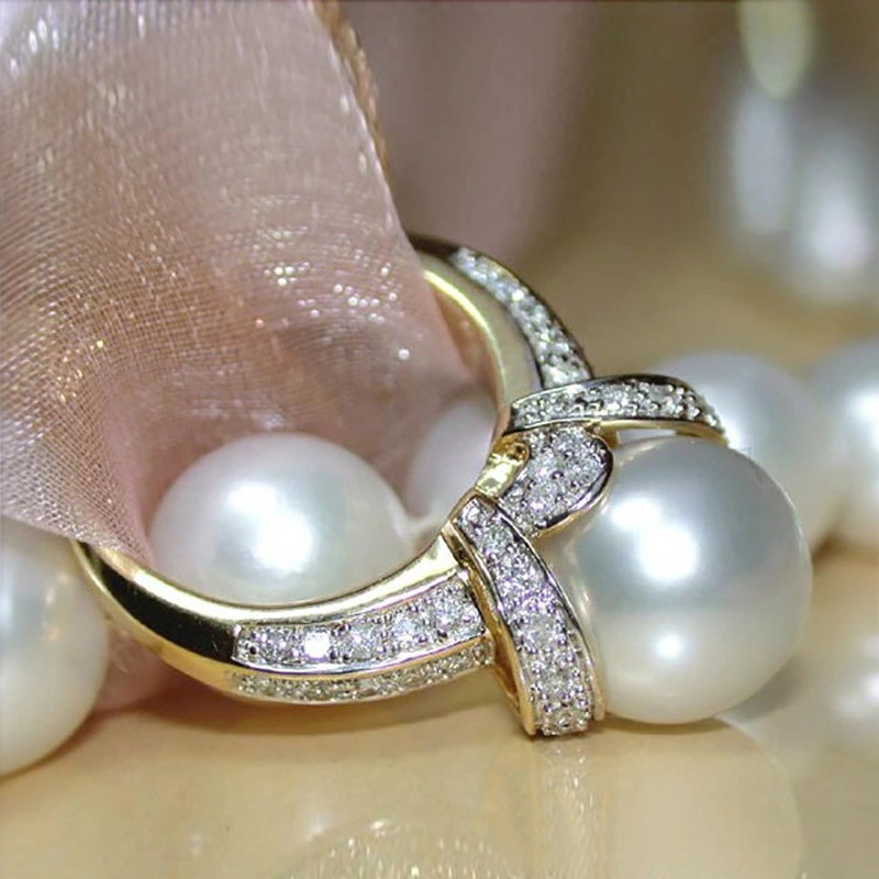 خاتم مطلي بالذهب من الزركون واللؤلؤ بتصميم أوروبي وأمريكية أنيق جديد للنساء مجوهرات زفاف رائعة بالجملة