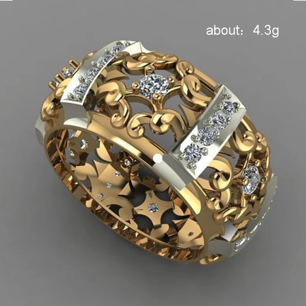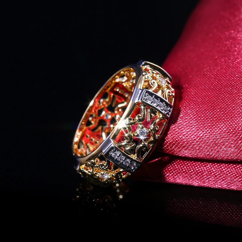 خاتم مطلي بالكهرباء بلونين جديد رائج البيع على الطراز الأوروبي والأمريكي خاتم ملون بنمط مجوف مجوهرات الزركون العصرية