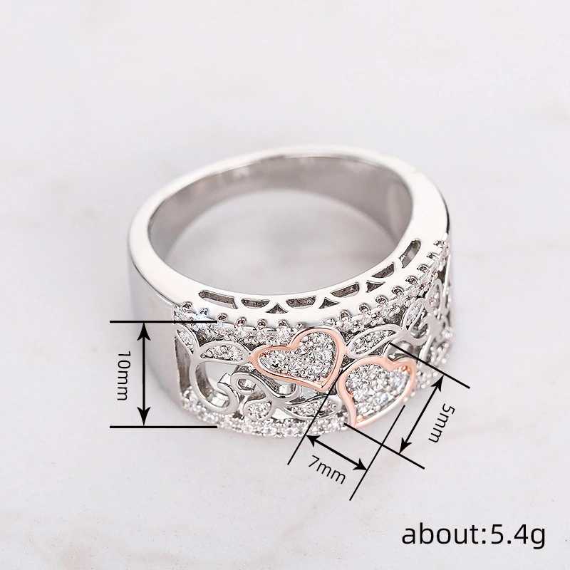 خاتم مطلي بالكهرباء ثنائي اللون للنساء، خاتم على شكل قلب من الذهب الوردي، مجوهرات زركون جميلة وعصرية