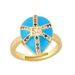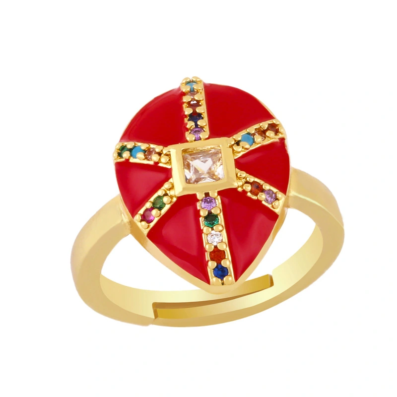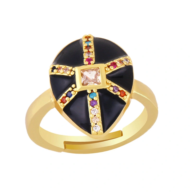 خاتم مفتوح على شكل قطرة ماء، خاتم عصري من المجوهرات الأوروبية والأمريكية للنساء، مرصع بالزركون الملون، خاتم عتيق rin36