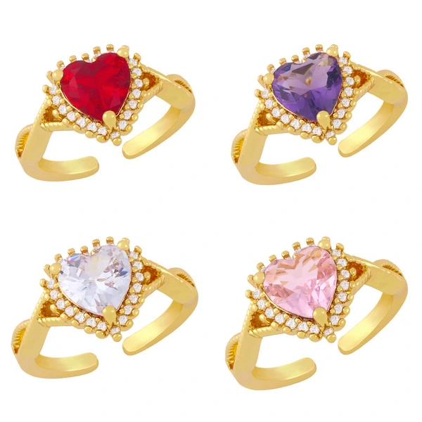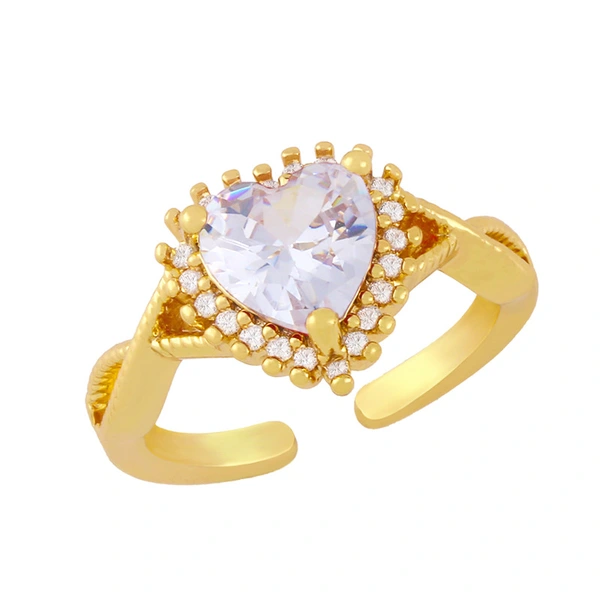خاتم مفتوح على شكل قلب مطلي بالذهب عيار 18 قيراطًا بتصميم أوروبي وأمريكية مرصع بالزركون، مقاس 23
