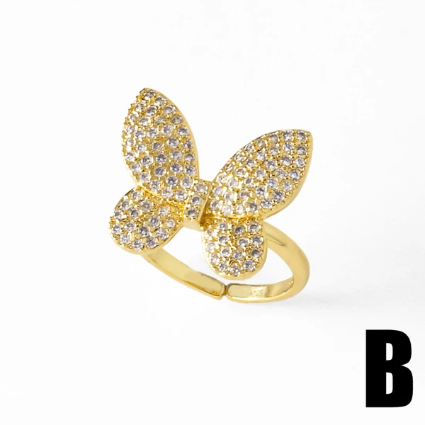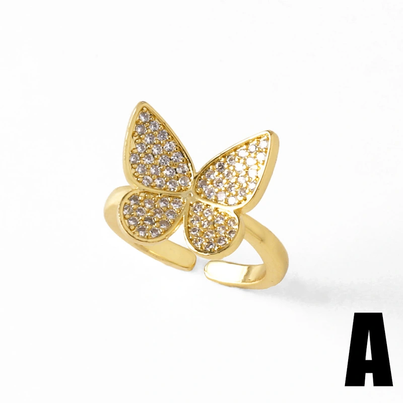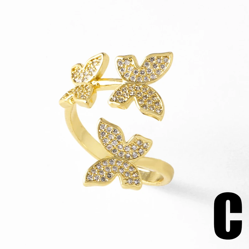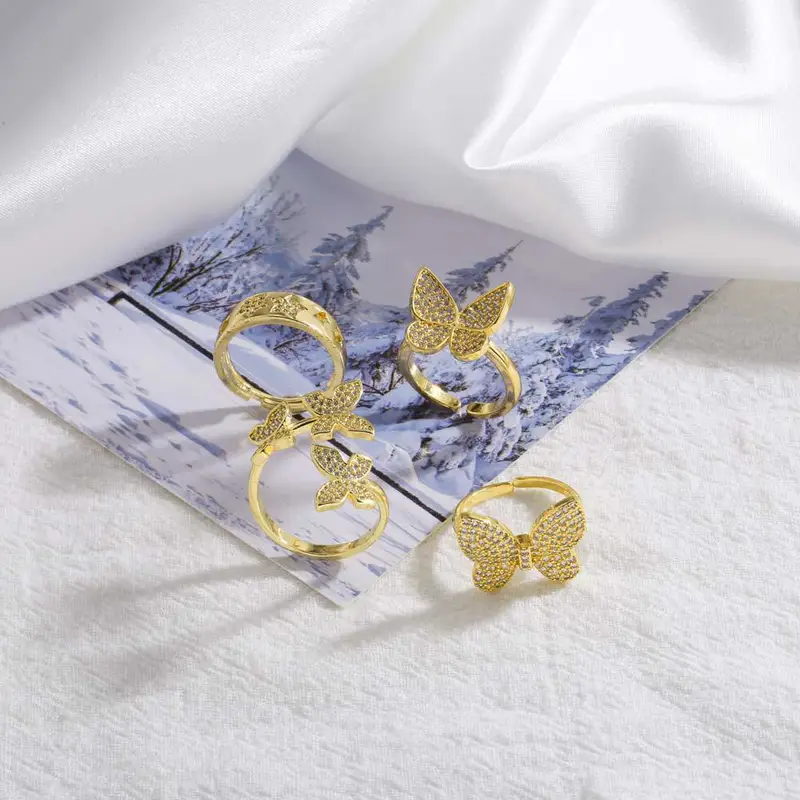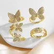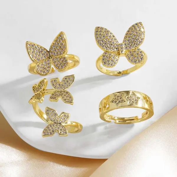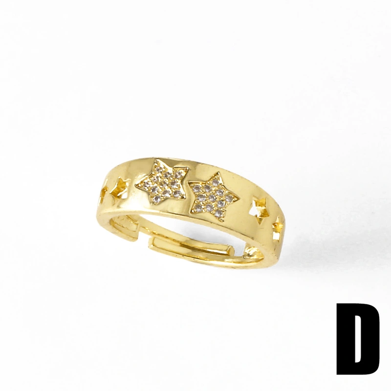 خاتم مفتوح على شكل نجمة فراشة مرصع بالزركون بالكامل مطلي بالنحاس من أوروبا وأمريكا عيار 18 قيراطًا، rij29