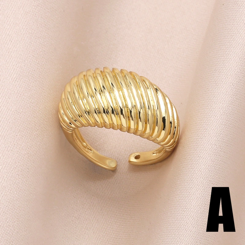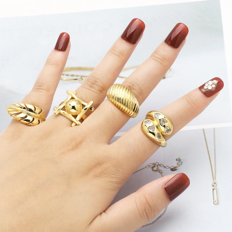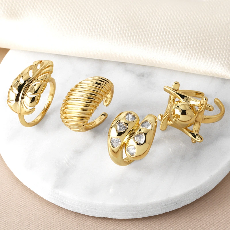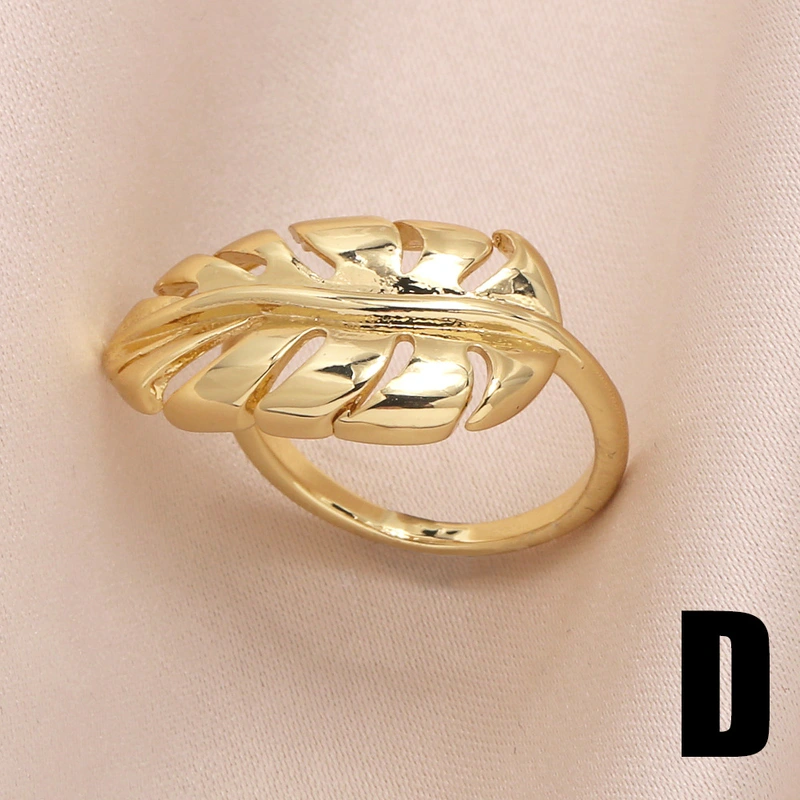 خاتم مفتوح على شكل ورقة شجر مجوهرات رائج البيع للنساء مطلي بالذهب خاتم دائري أملس قابل للتعديل rin27
