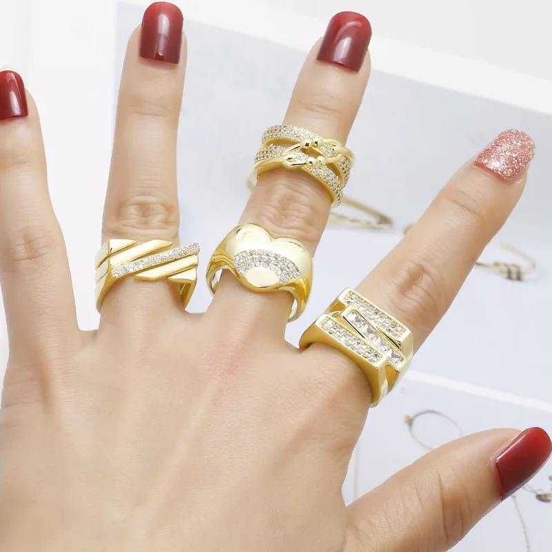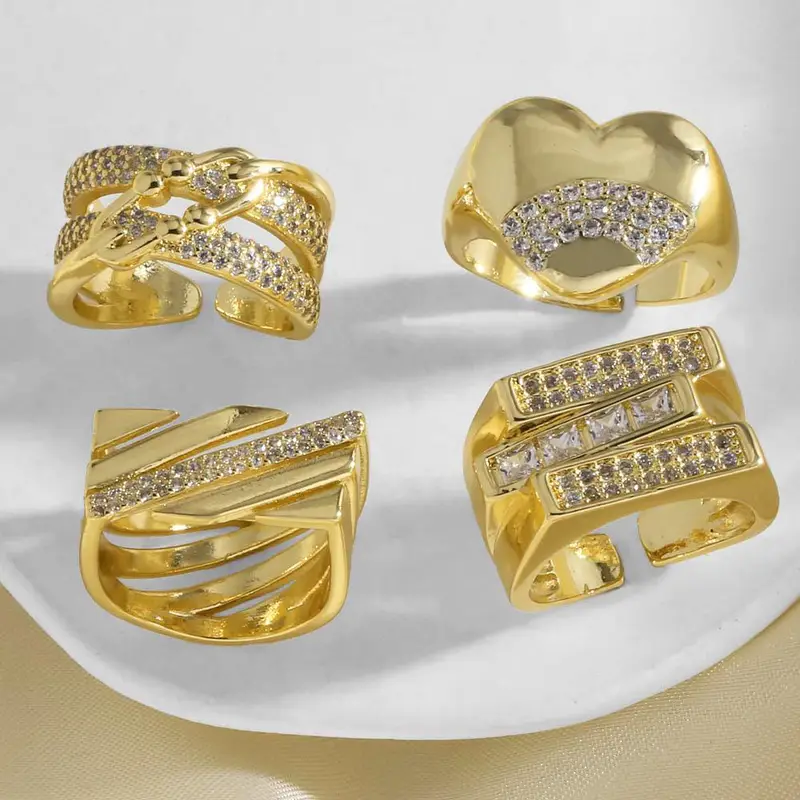خاتم مفتوح غير منتظم على شكل قلب من الذهب عيار 18 قيراطًا مطلي بالنحاس الأوروبي والأمريكي RIS72