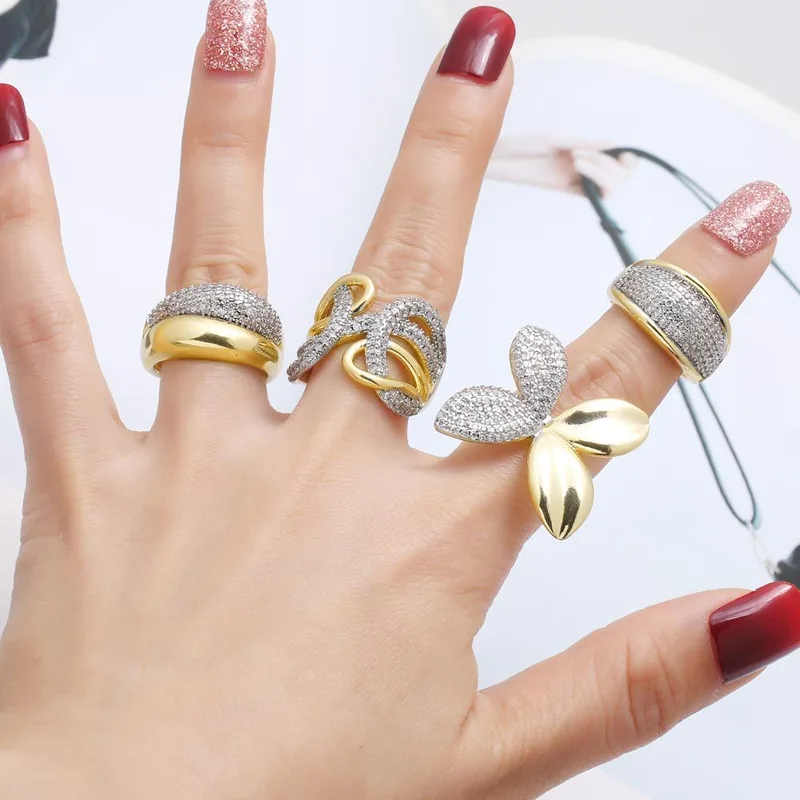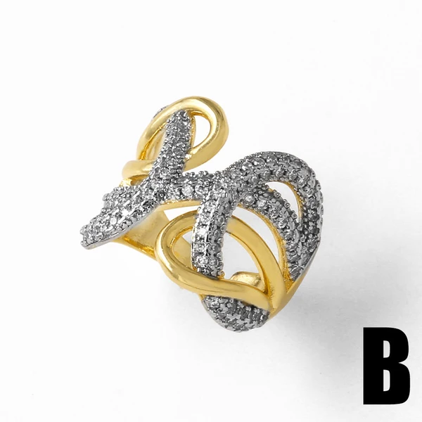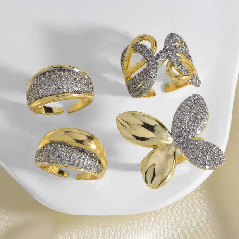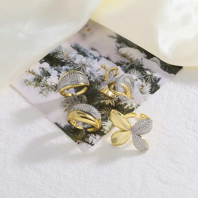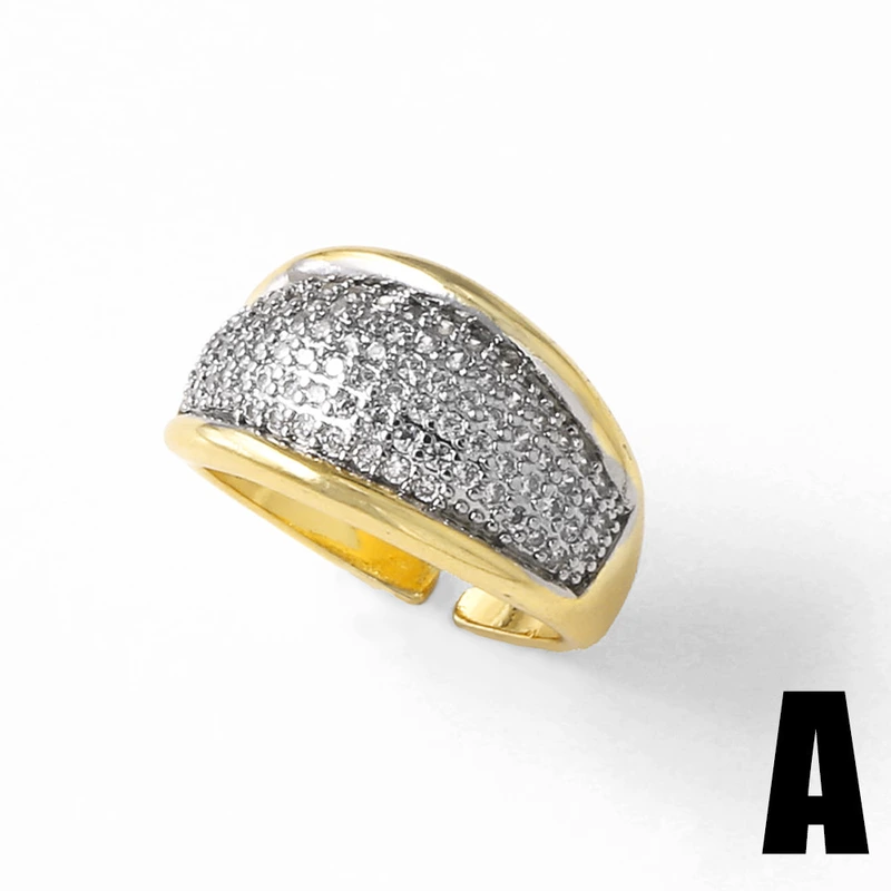 خاتم مفتوح غير منتظم مرصع بالزركون بلونين بتصميم جديد ومثير كالمجوهرات للنساء rir49
