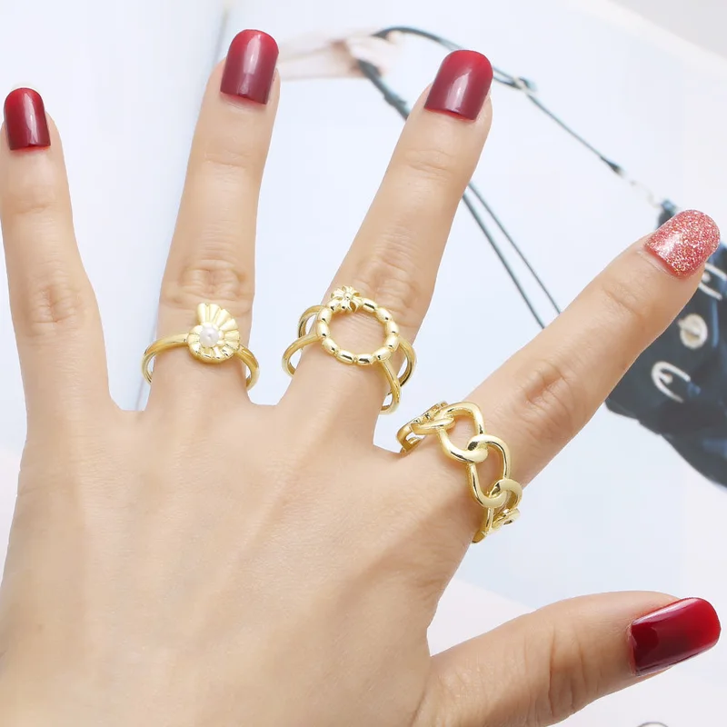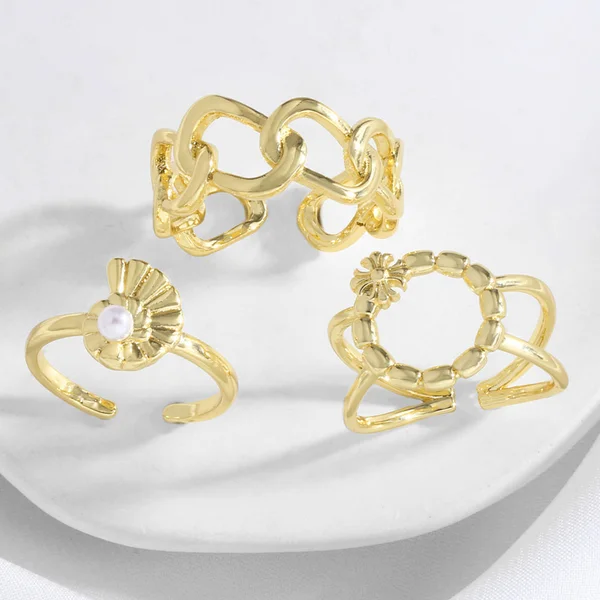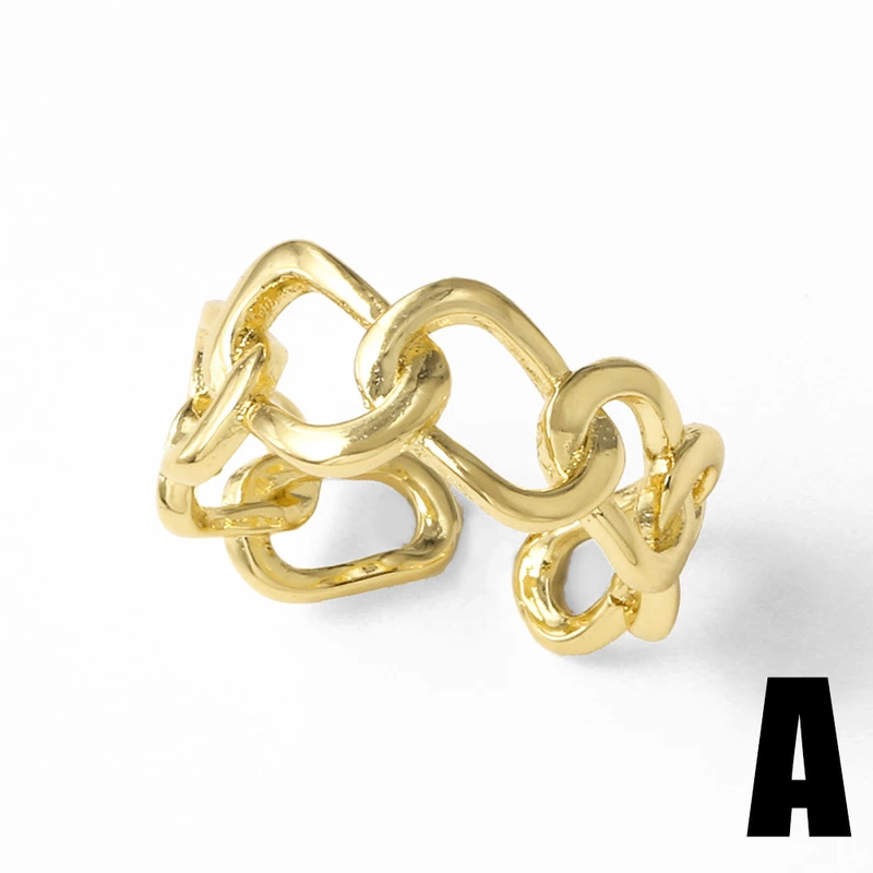خاتم مفتوح غير منتظم من الذهب عيار 18 قيراطًا مطلي بالنحاس من المجوهرات الأوروبية والأمريكية الأكثر مبيعًا rik05