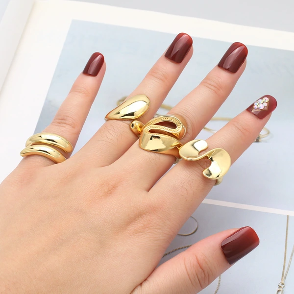 خاتم مفتوح غير منتظم من المجوهرات الأوروبية والأمريكية، خاتم نسائي بتصميم عتيق مطلي بالنحاس الناعم عيار 18 قيراطًا، رقم الخاتم RIS71