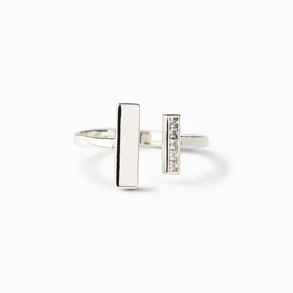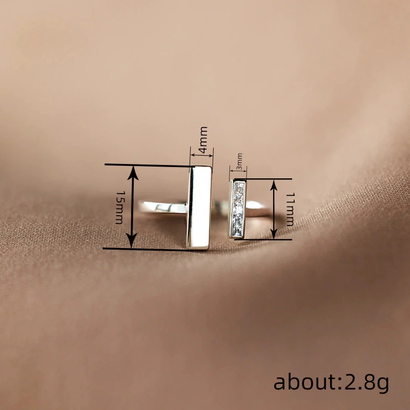 خاتم مفتوح مربع بسيط عصري مرصع بالزركون، خاتم مجوهرات بسيط مناسب للاستخدام اليومي