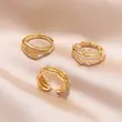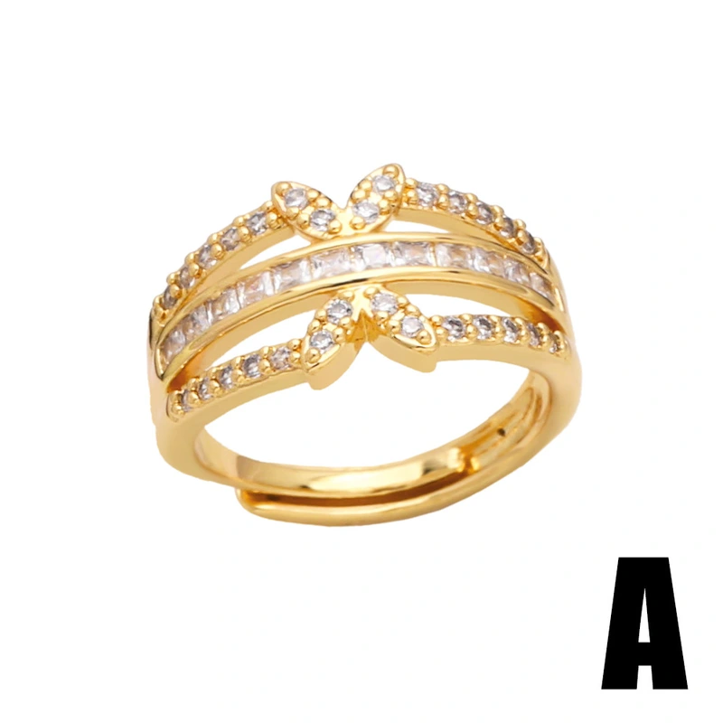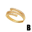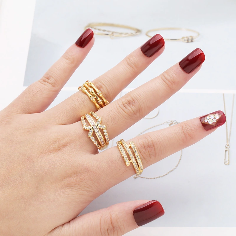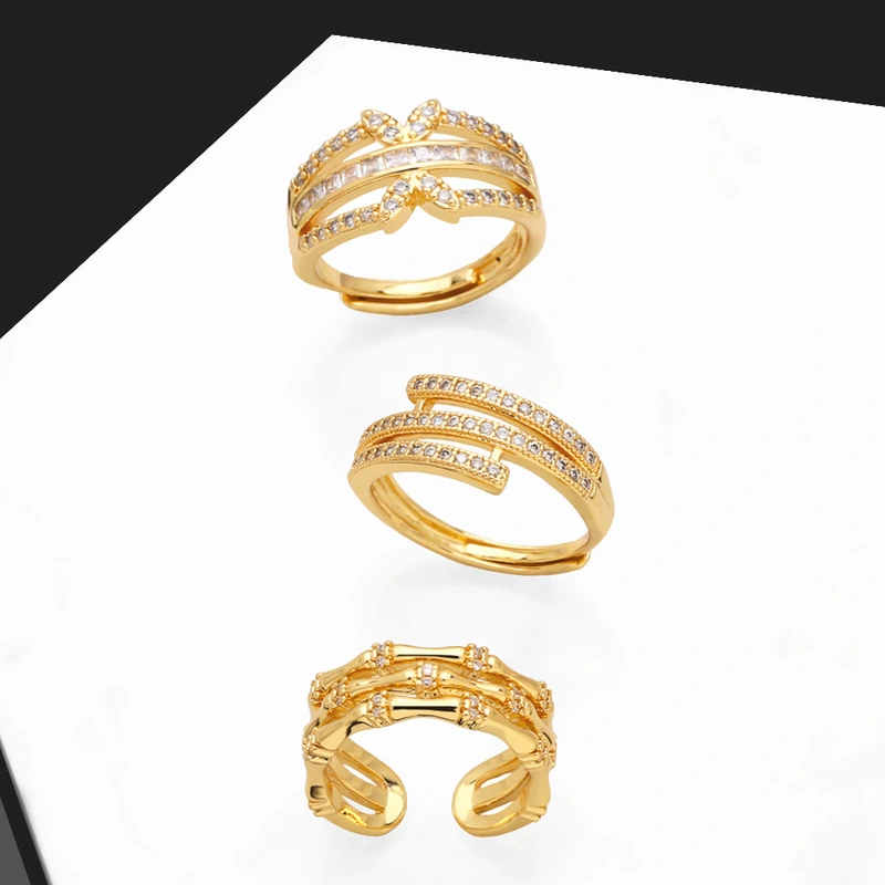 خاتم مفتوح مزدوج الطبقات بتصميم أوروبي وأمريكية للنساء مرصع بالزركون مطلي بالذهب خاتم مجوهرات راقي ris35