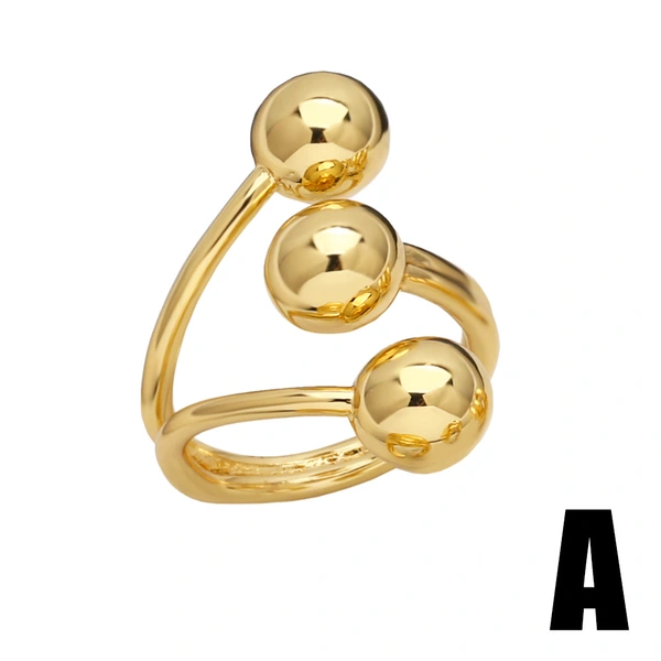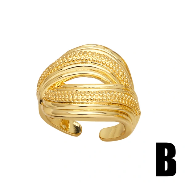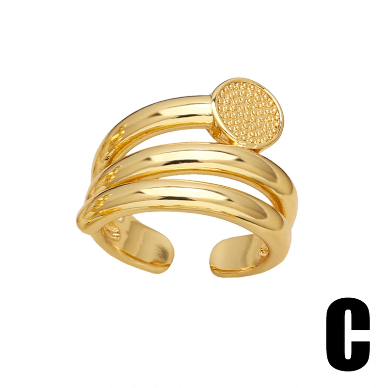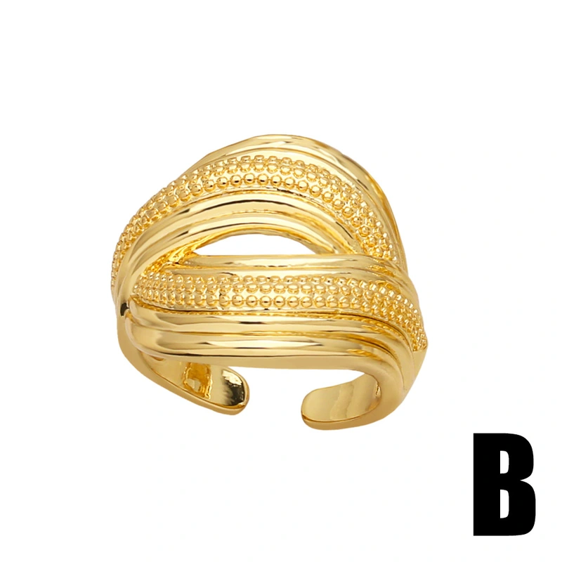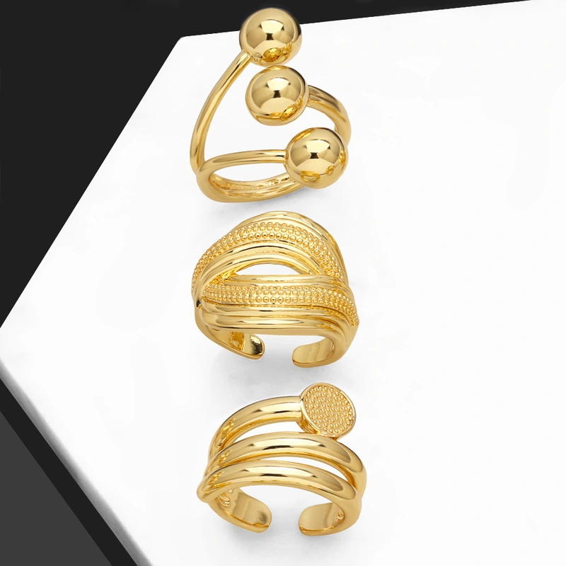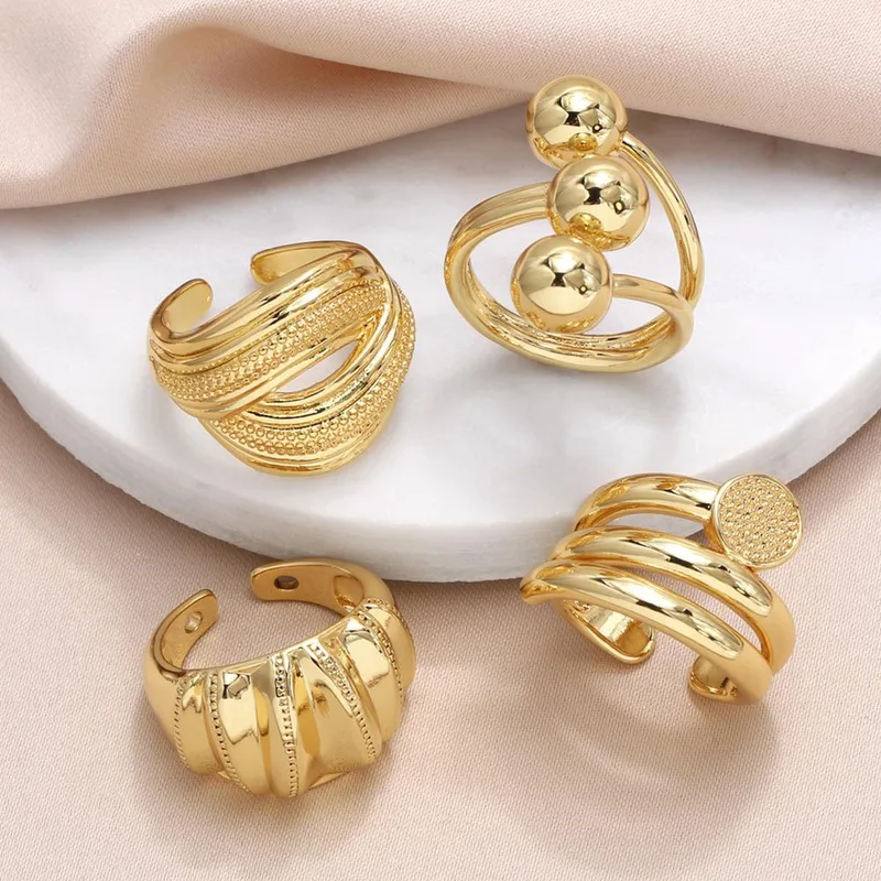 خاتم مفتوح مزدوج الطبقات دائري من المجوهرات الأوروبية والأمريكية للنساء، خاتم مطلي بالذهب عالي الجودة ris75