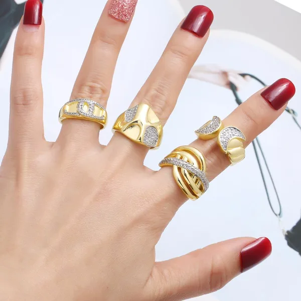 خاتم بتصميم أوروبي وأمريكي فاخر، خاتم عصري من الزركون على شكل عين الحصان، خاتم إصبع السبابة بتصميم مجوف متعدد الطبقات