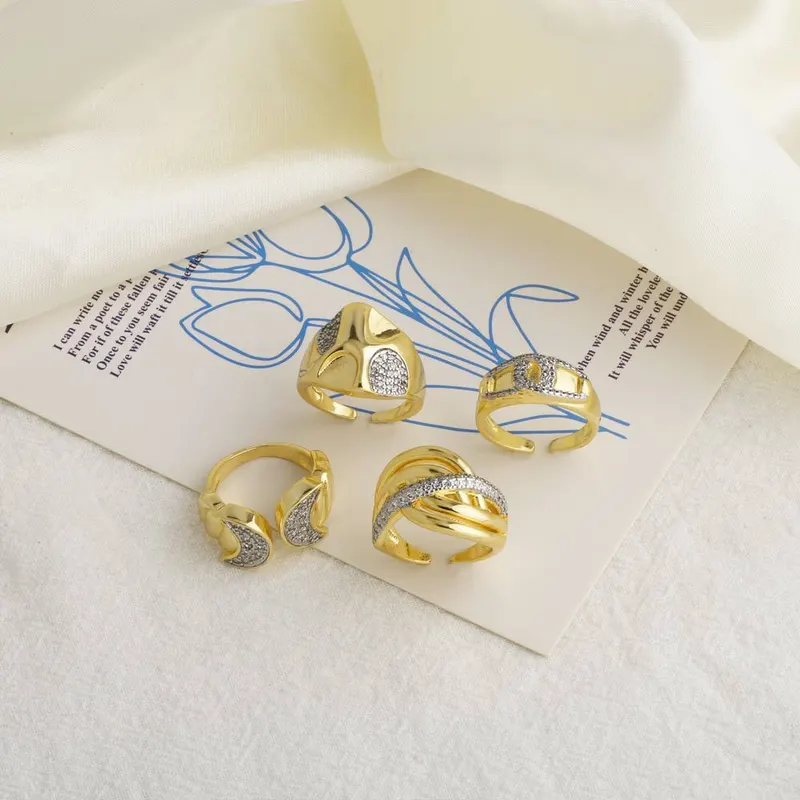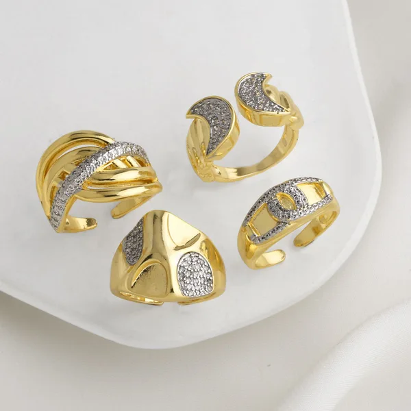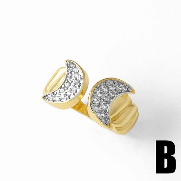 خاتم مفتوح مطلي بالذهب للنساء بلونين على شكل صليب قمري أوروبي وأمريكي rir18