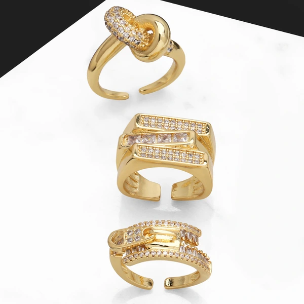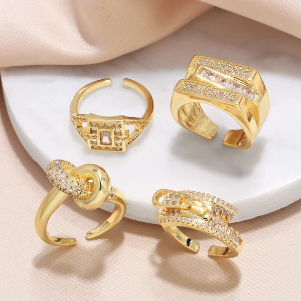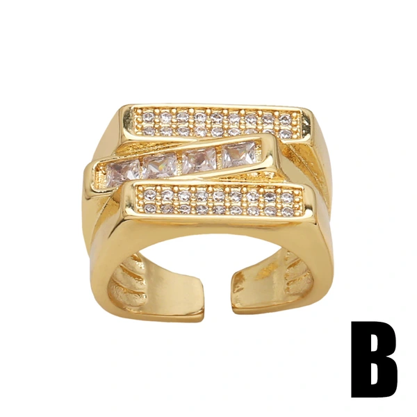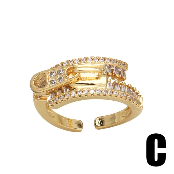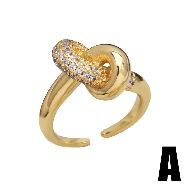 خاتم مفتوح من الألماس بالكامل بتصميم أوروبي وأمريكي، للنساء، مرصع بالزركون، مطلي بالذهب، RIS50