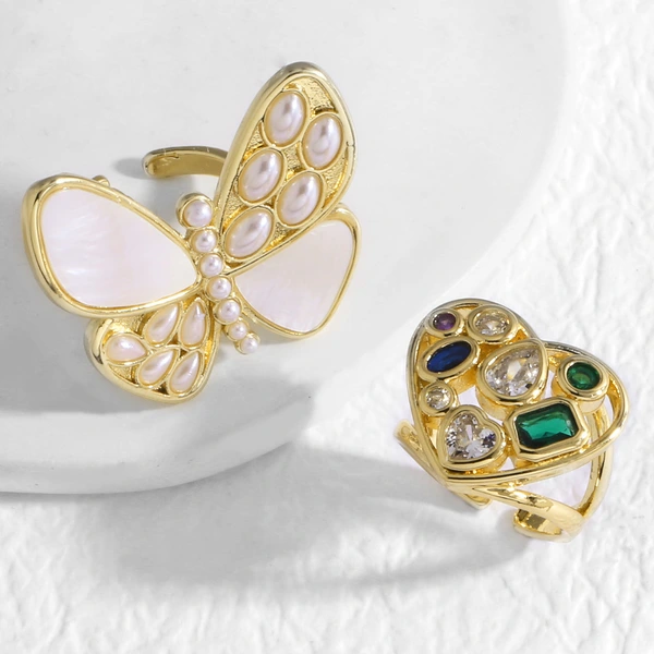 خاتم مفتوح من الزركون الكامل على شكل فراشة لؤلؤة للبيع بالجملة من المجوهرات rij05