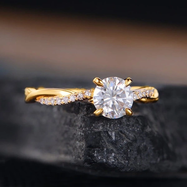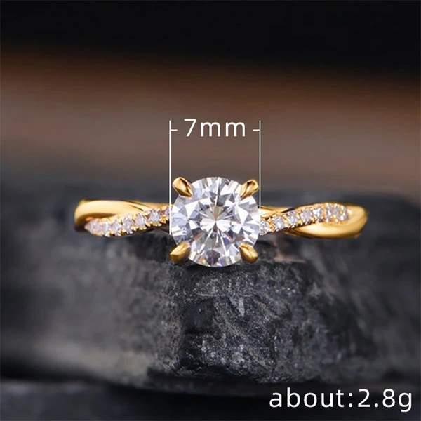 خاتم كلاسيكي مرصع بأحجار الزركون المقلد بأربعة مخالب للنساء، خاتم ذراع ملتوي مزدوج اللون، خاتم خطوبة وزواج للنساء