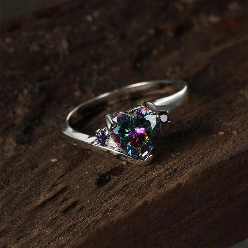 خاتم ملون على شكل قلب شخصية إبداعية أوروبية وأمريكية قوس قزح خاتم قلب الخوخ تصميم ذراع متأرجح خاتم مناسب لجميع المناسبات