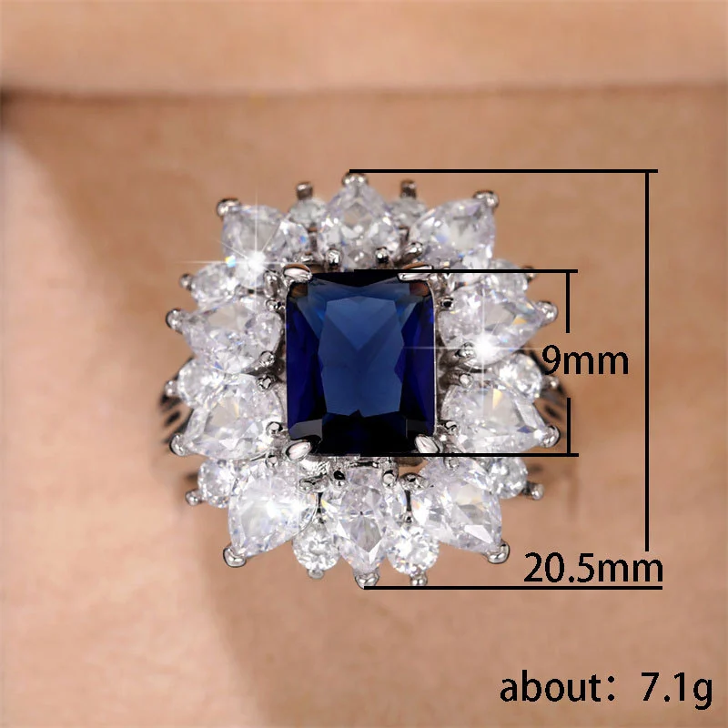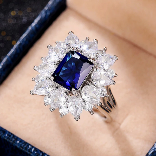 خاتم من الزركون الأزرق عالي الجودة مجوهرات البث المباشر مزاج أنثوي مرصع بخاتم ألماس كامل