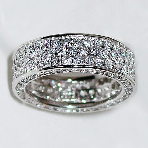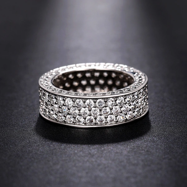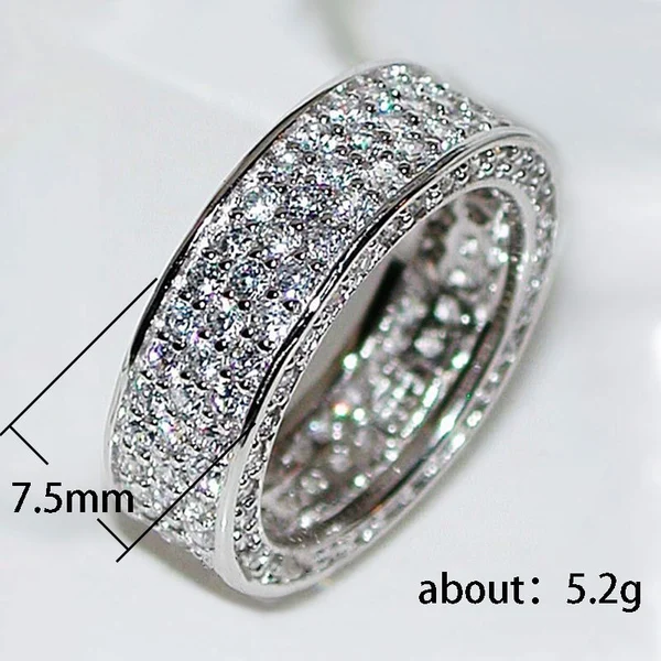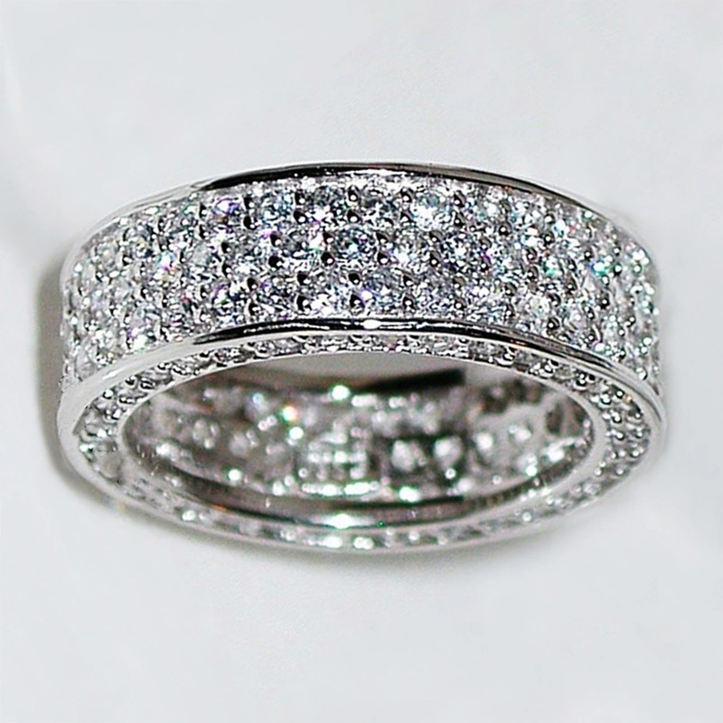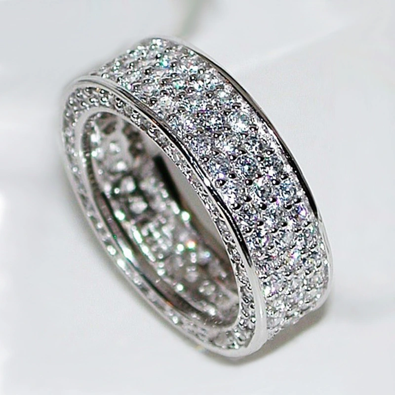 خاتم من الزركون المرصع بالكامل متعدد الصفوف من الطراز الكوري الأوروبي والأمريكي الأكثر مبيعًا على الإنترنت بمزاج المشاهير المرصع بالنجوم للبيع بالجملة