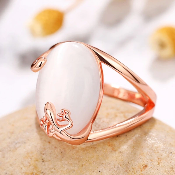 خاتم من اليشم الهيتيان المقلد بالجملة من الشركة المصنعة، خاتم حجر القمر الصغير اللطيف، خاتم مبالغ فيه في الغلاف الجوي