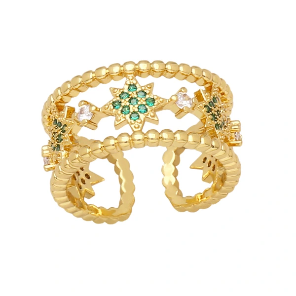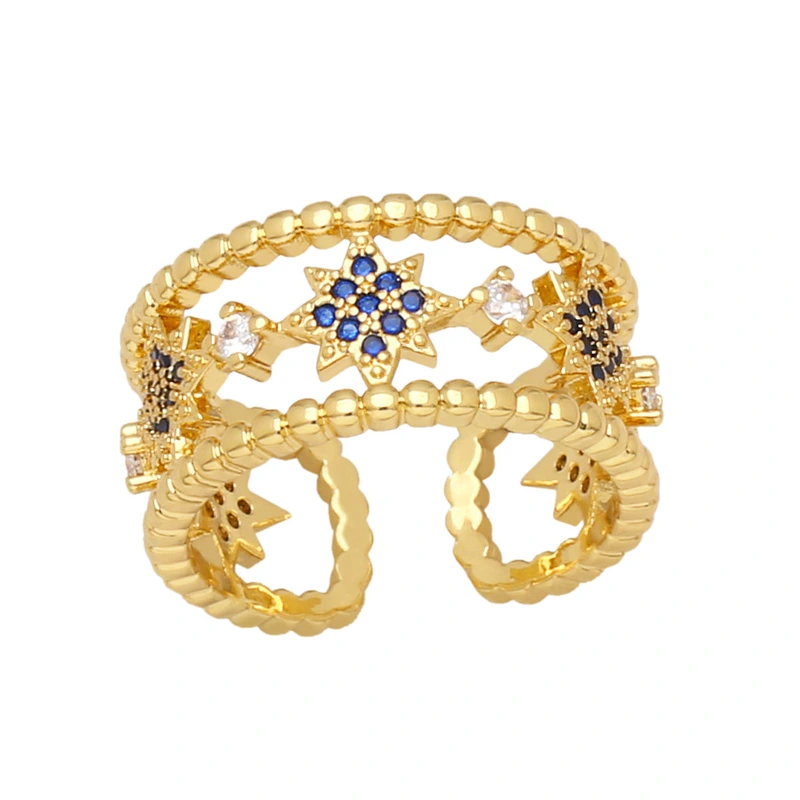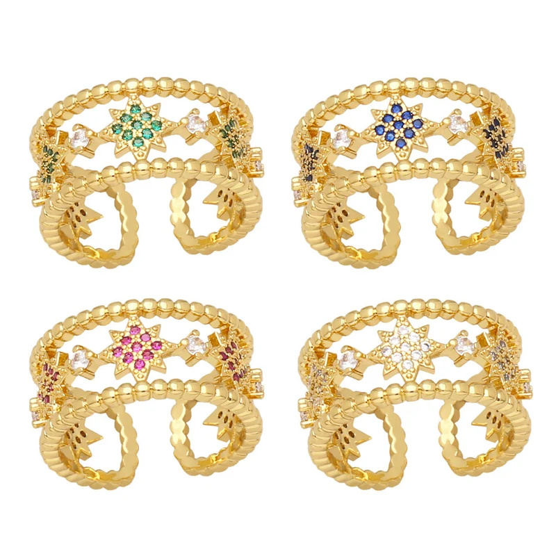 خاتم نجمة خماسية الشكل من التصفية للنساء، خاتم مفتوح من الزركون الملون، مجوهرات المشاهير على الإنترنت rir13