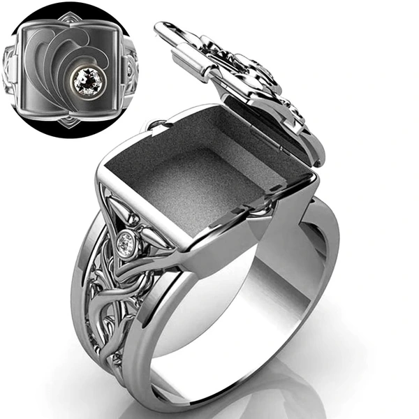خاتم نحاسي جديد للرجال على طراز الهيب هوب بانك أوروبي وأمريكي إبداعي على شكل صندوق خاتم قلاب