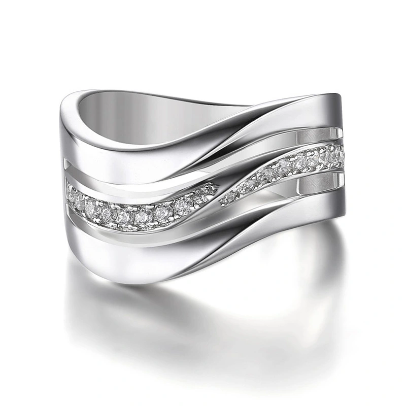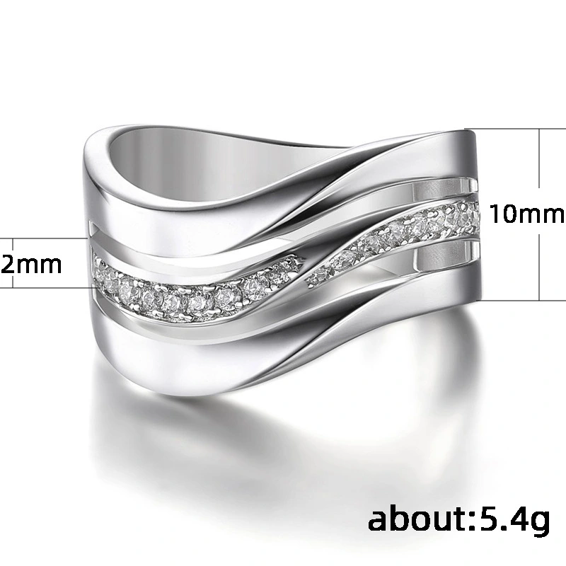 خاتم نحاسي مطلي بالكهرباء للنساء ذو ​​ثلاثة خطوط متموجة بتصميم بسيط وبيع بالجملة