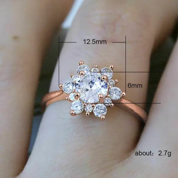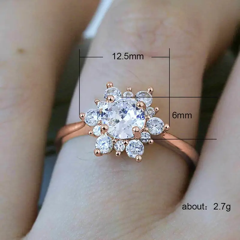 خاتم ندفة الثلج الجديد المصنوع من النحاس المرصع بالزركون، مجوهرات يدوية من الألماس محاكاة عصرية أوروبية وأمريكية للنساء
