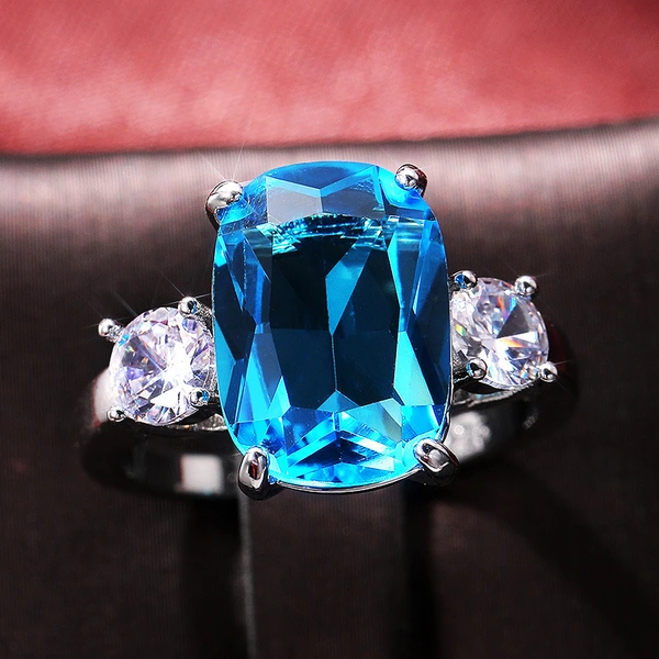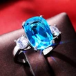 خاتم نسائي أنيق من الزركون الأزرق البحري فائق الوميض للبيع بالجملة مجوهرات يدوية لحفلات الزفاف