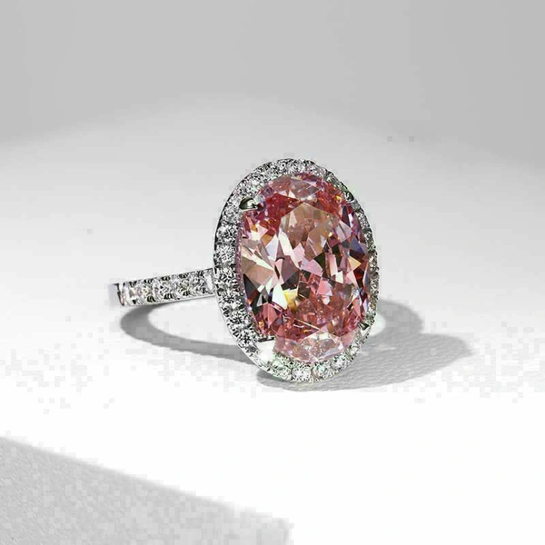 خاتم نسائي أنيق من الزركون الوردي بتصميم بيضاوي الشكل الأكثر مبيعًا في عام 2023، خاتم مويسانيتي مقلد بمزاج رائع
