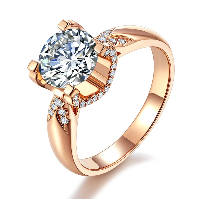 خاتم كلاسيكي مرصع بأحجار الزركون المقلد بأربعة مخالب للنساء، خاتم ذراع ملتوي مزدوج اللون، خاتم خطوبة وزواج للنساء