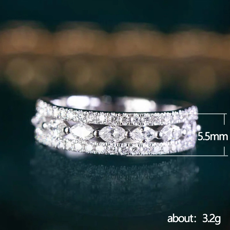 خاتم نسائي بتصميم أوروبي وأمريكي أنيق مطلي بالنحاس والذهب الأبيض نصف دائرة مرصع بالألماس وعين الحصان مرصعة بالزركون