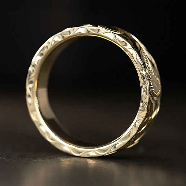 خاتم زهرة ميمونة محفورة بشكل كلاسيكي بتصميم عريض من خاتم مياو على الطراز العرقي من يونان، مجوهرات للرجال والنساء