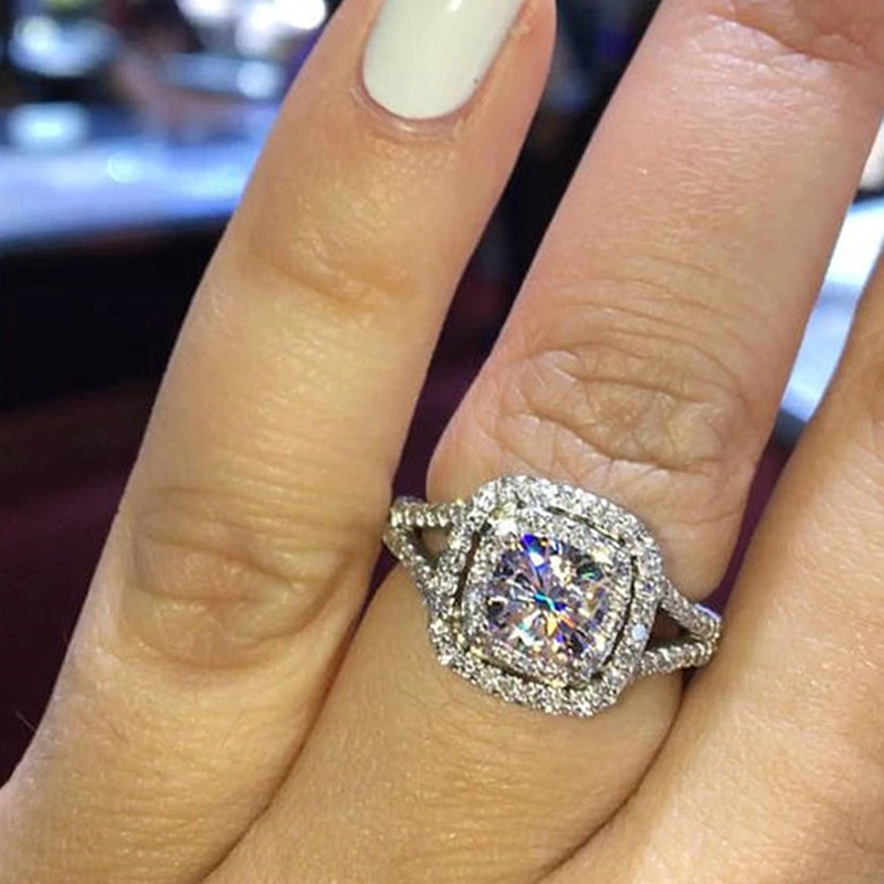 خاتم الأميرة المربع الجديد الأكثر مبيعًا على الطراز الأوروبي والأمريكي المرصع بالزركون مجوهرات نسائية خاتم خطوبة وزواج