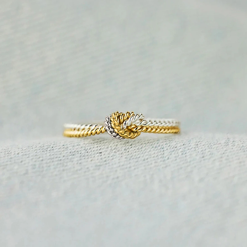 خاتم كلاسيكي مرصع بأحجار الزركون المقلد بأربعة مخالب للنساء، خاتم ذراع ملتوي مزدوج اللون، خاتم خطوبة وزواج للنساء