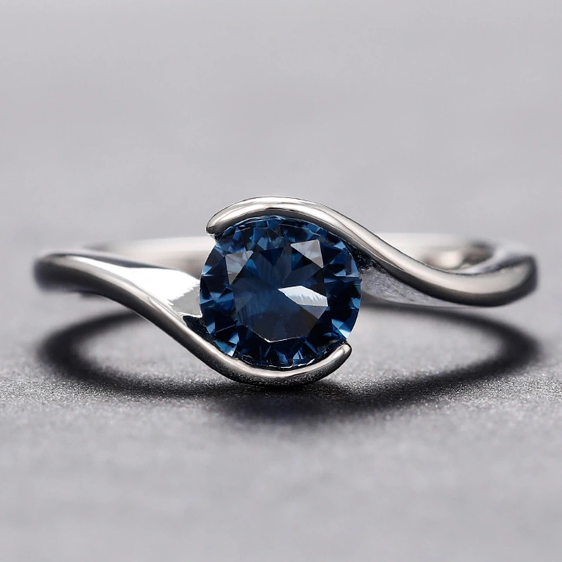خاتم نسائي بسيط من الزركون والتوباز والماس الأزرق الدائري للبيع الساخن
