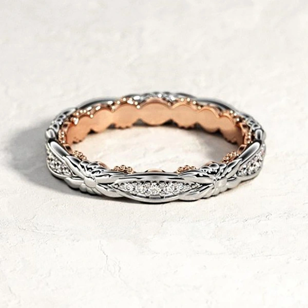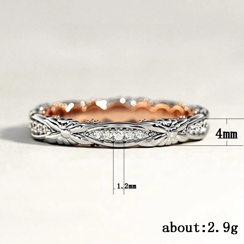 خاتم كلاسيكي مرصع بأحجار الزركون المقلد بأربعة مخالب للنساء، خاتم ذراع ملتوي مزدوج اللون، خاتم خطوبة وزواج للنساء