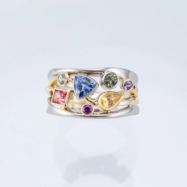 خاتم نسائي بنمط هندسي متعدد الألوان رائع للبيع بالجملة مرصع بحجر الزركون على شكل موجة
