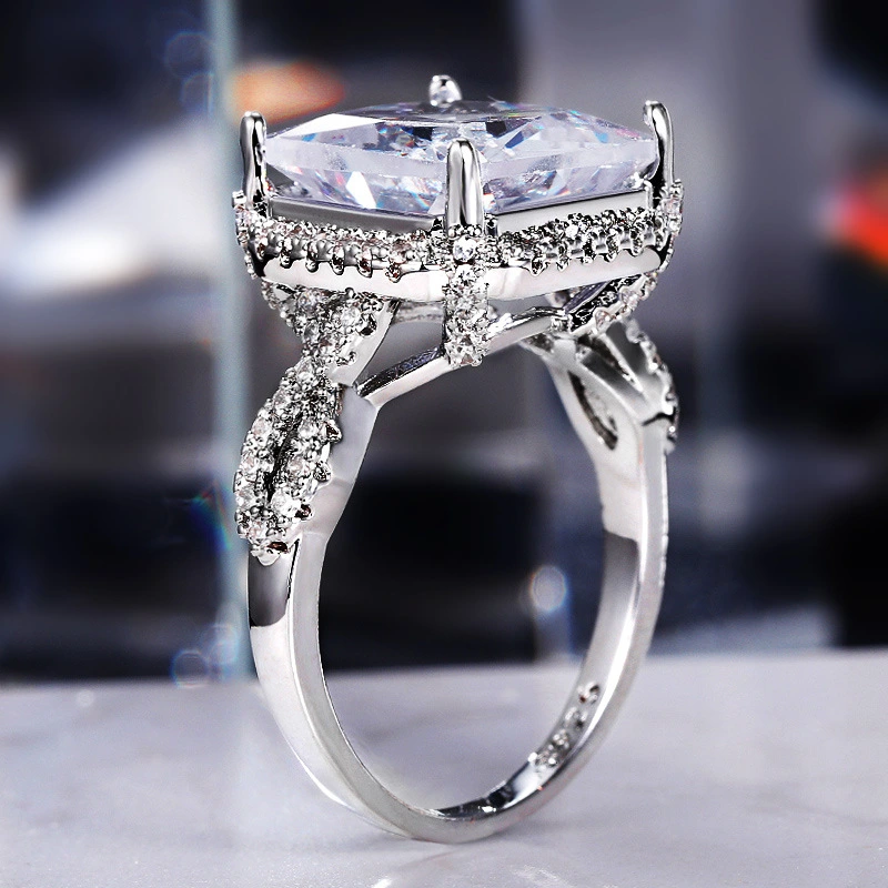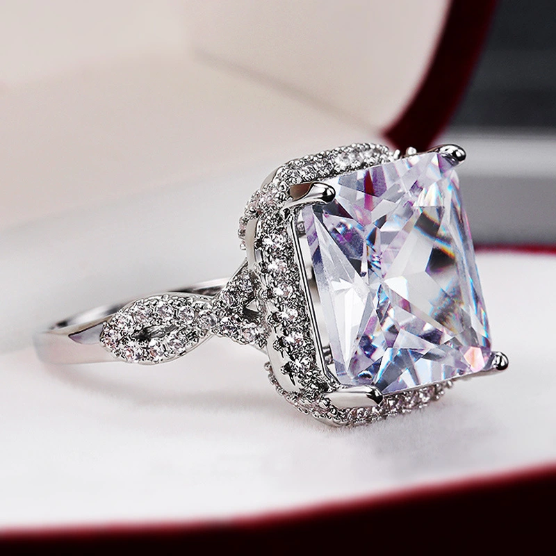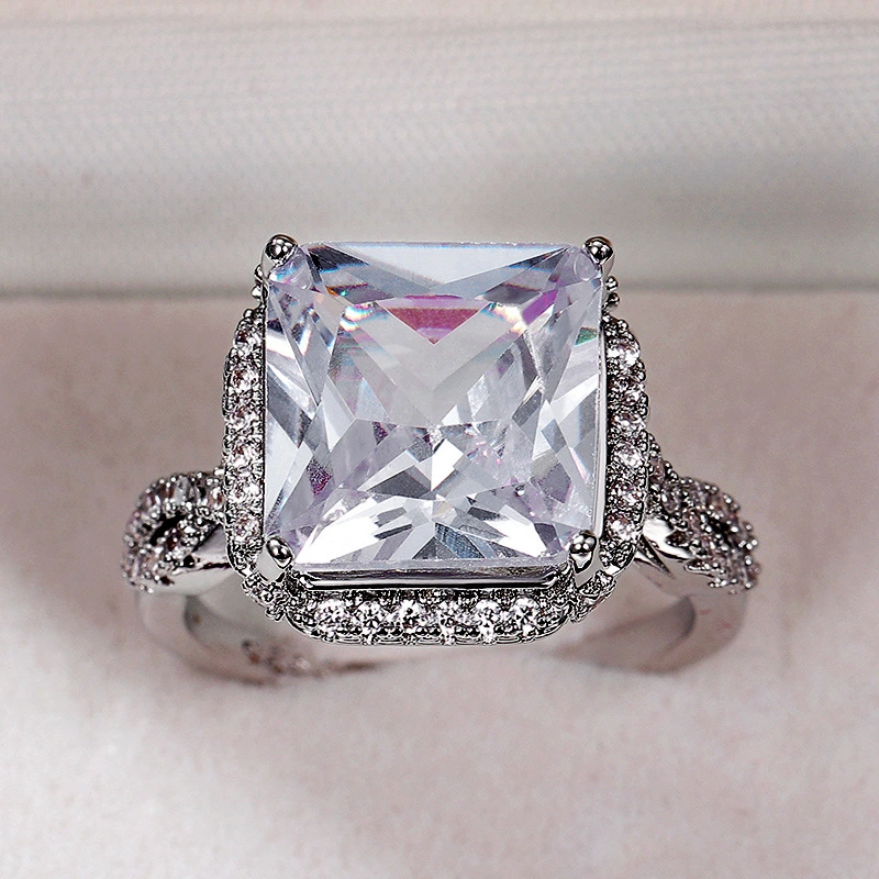 خاتم نسائي جديد أنيق كبير الحجم من الزركون المربع الفاخر خاتم ألماس متألق للزفاف مجوهرات يدوية