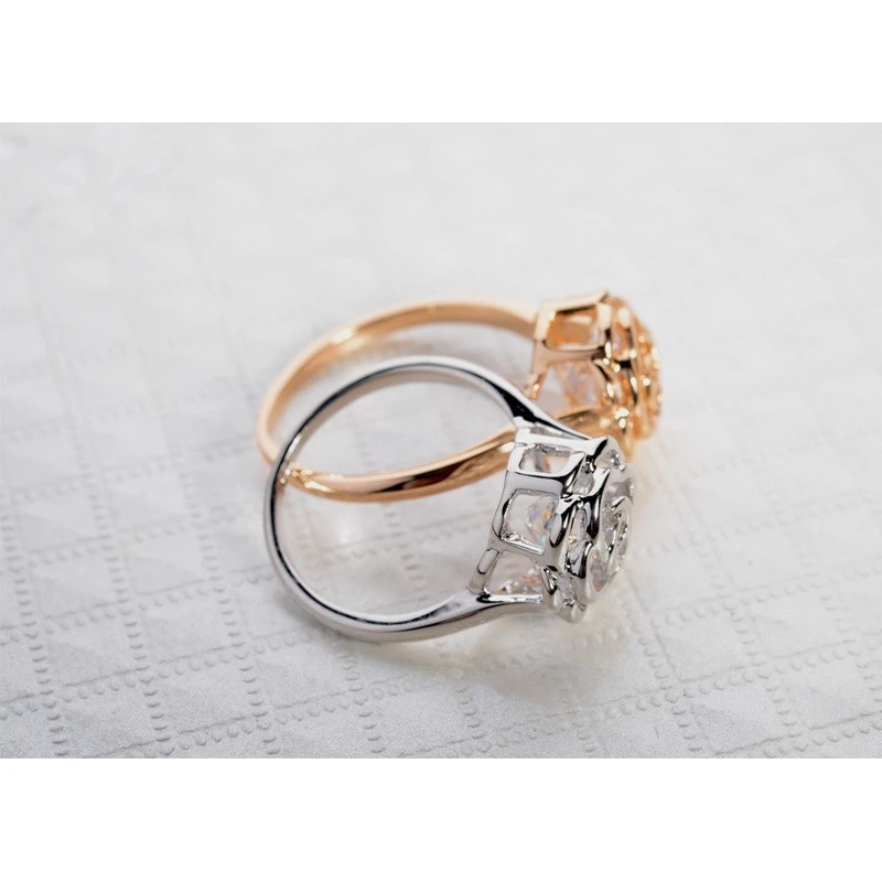 خاتم نسائي جديد بالجملة من الألماس الداخلي الإبداعي مطلي بالنحاس الوردي المجوف من الذهب الأبيض مرصع بالزركون