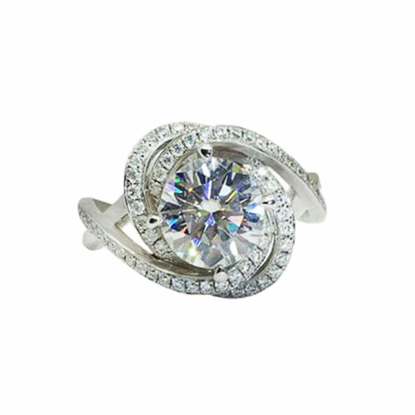 خاتم كلاسيكي مرصع بأحجار الزركون المقلد بأربعة مخالب للنساء، خاتم ذراع ملتوي مزدوج اللون، خاتم خطوبة وزواج للنساء