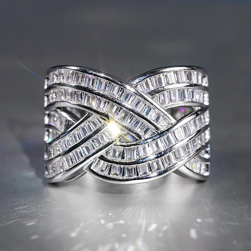 خاتم نسائي جديد بتصميم متقاطع متعدد الطبقات، رائع وعصري وأنيق، مبيعات مباشرة من المصنع